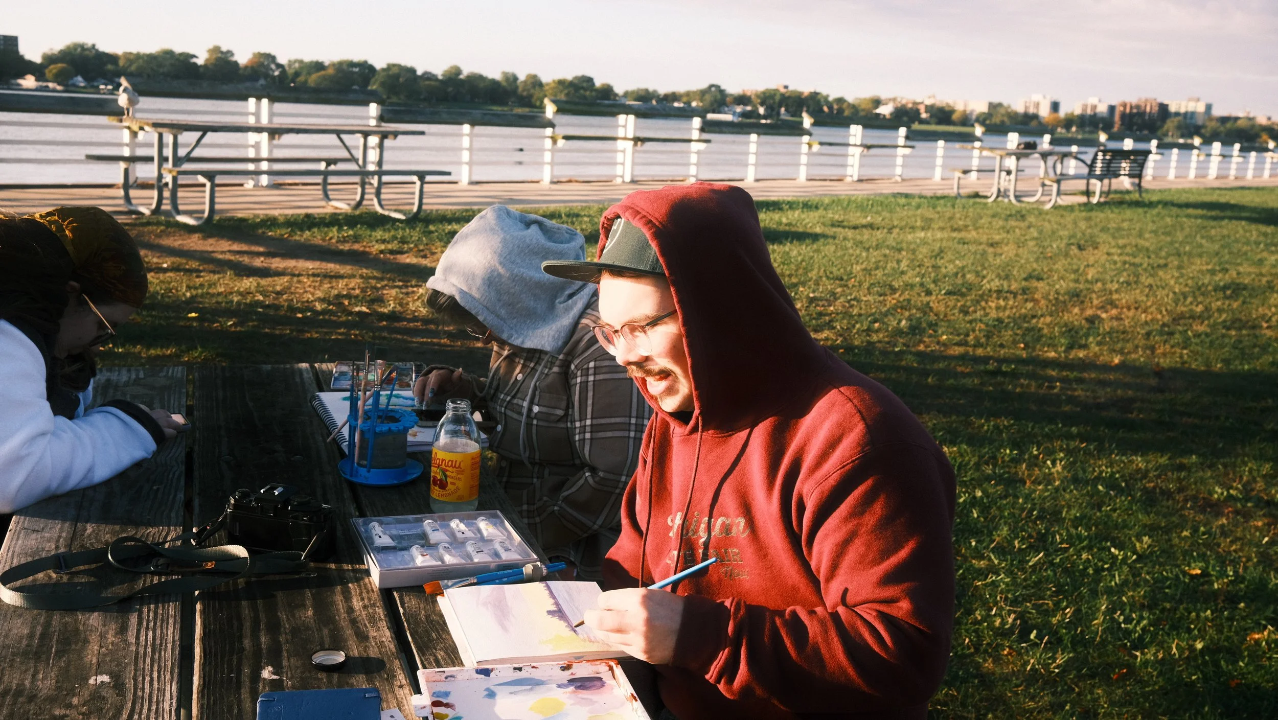 If I'm not hunched over my desk (or easel), I'm probably biking or kicking rocks or doing something fun.